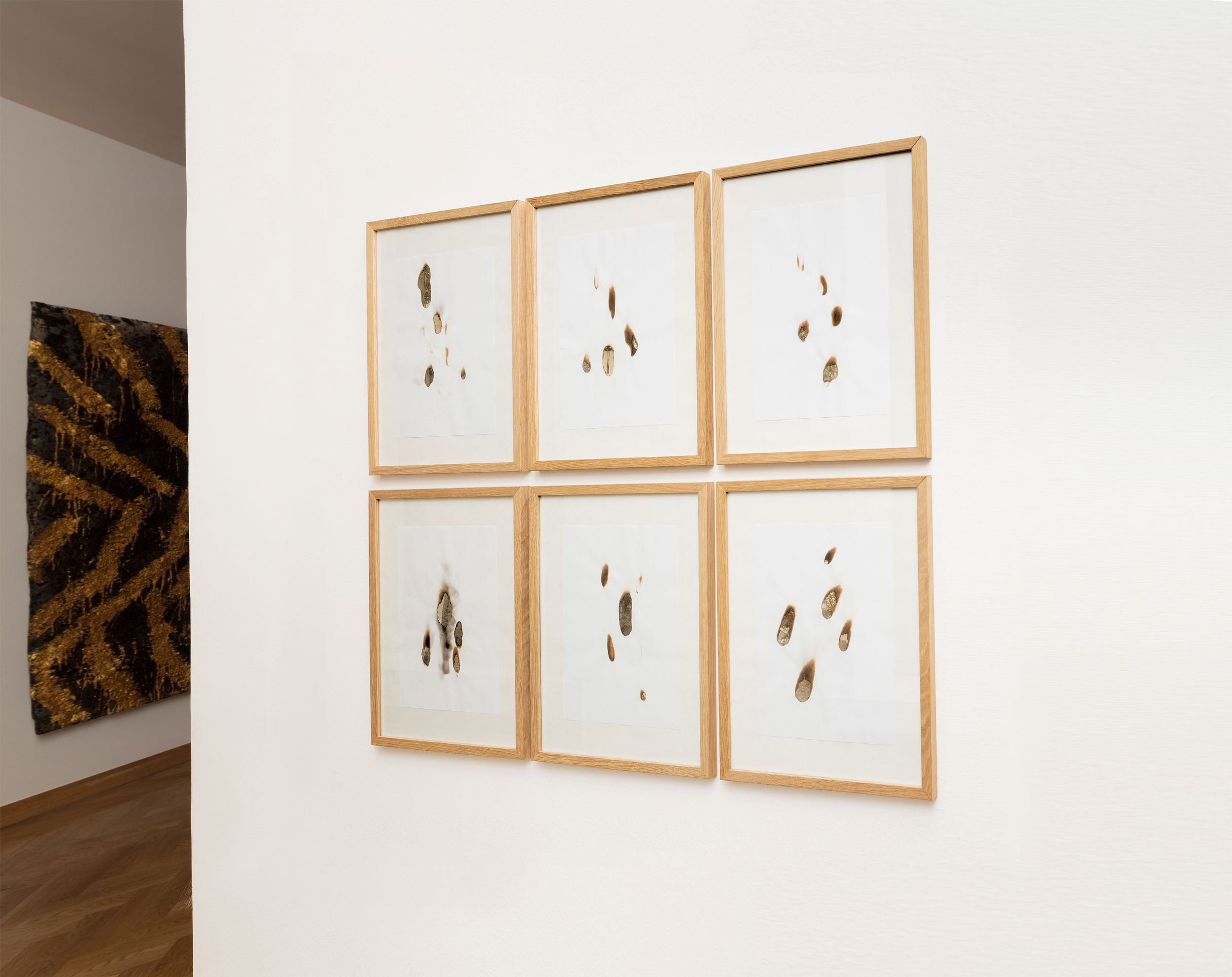 EXPANDED ECHOES CONSTELLATIONS ARCHIVES (details) – Archive images, newspapers, and burnt paper (various sizes) FIRE — The Boghossian Foundation Collection – Villa Empain, Brussels, 2025