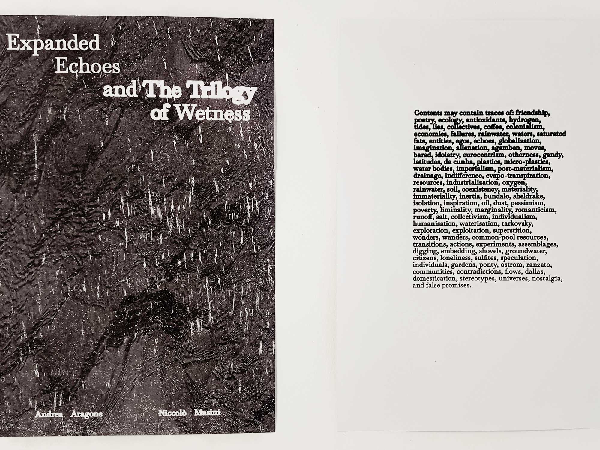 Excerpts from the publication Expanded Echoes and The Trilogy of Wetness by Andrea Aragone and Niccolò Masini Published by Latitude Logbook, 2025.